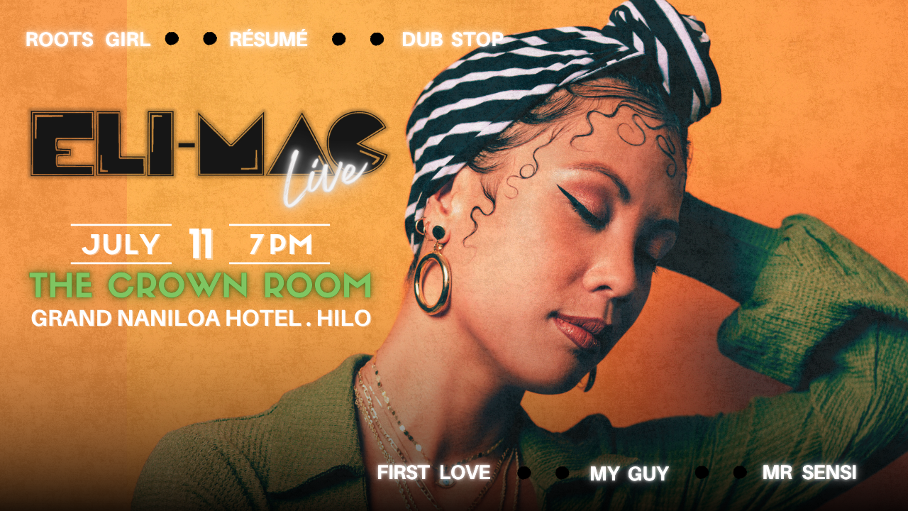 Prepare for an unforgettable night of live music and good vibes as Eli Mac takes the stage at the Naniloa Crown Room in Hilo. Known for her powerful vocals, fierce energy, and fearless blend of reggae, soul, and hip-hop, Eli brings a bold, raw sound and uniquely her own.